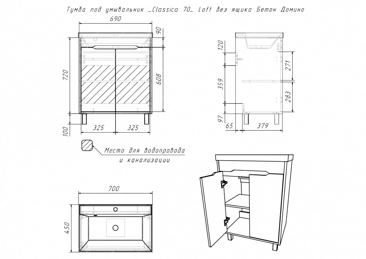 Тумба под умывальник "Classica 70" Loft Бетон Домино для ванной из коллекции Loft станет стильным и функциональным дополнением вашего интерьера. Изготовленная из ЛДСП и МДФ с покрытием пленкой ПВХ, она гарантирует долговечность и устойчивость к условиям высокой влажности. Цвет корпуса в оттенке Метрополитан Грей и темно-серый фасад, имитирующий бетон, подчеркнут современный стиль вашей ванной комнаты. Мебель для ванной комнаты должна быть не только эстетичной, но и практичной, что полностью относится к этому изделию