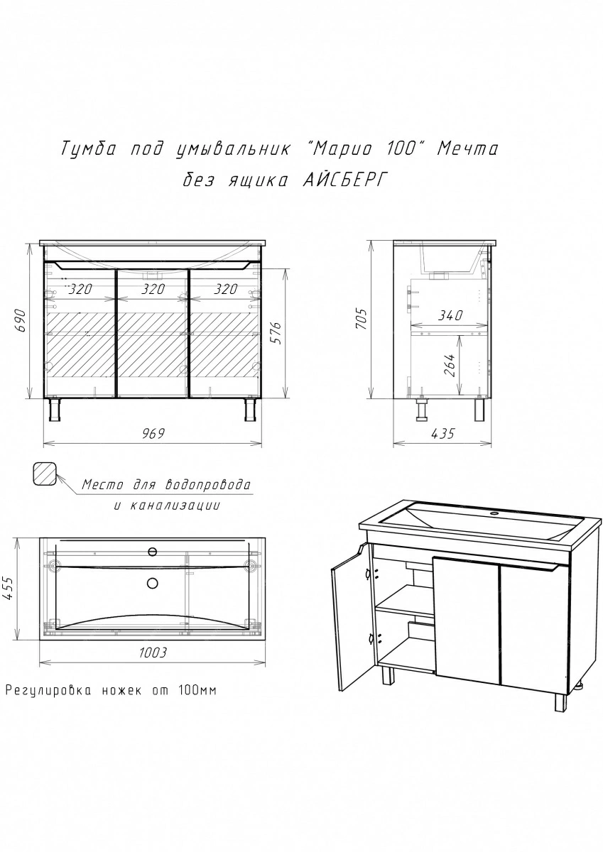Тумба под умывальник "Maria 100" Мечта без ящика АЙСБЕРГ станет отличным дополнением для любой ванной комнаты. Тумбочка подходит для установки под раковину, обеспечивая удобство и стиль. Напольная конструкция позволяет легко разместить её в нужном месте, создавая гармоничное пространство.