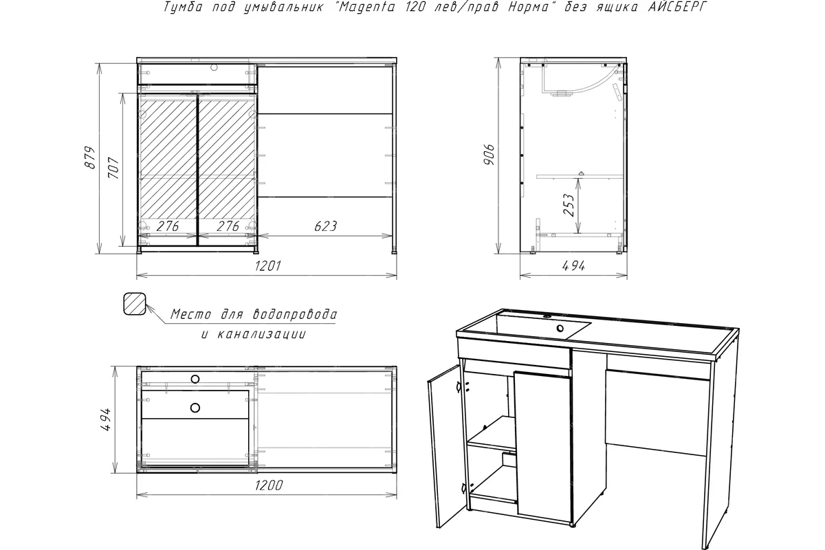 Тумба под умывальник АЙСБЕРГ "Magenta 120 лев/прав Норма" без ящика DA1659T проходит многоуровневый контроль качества, при производстве используются влагостойкие материалы. Максимальная влагостойкость изделия обеспечивается за счет приклеивания кромки ПВХ высокотехнологичными полиуретановыми клеями.