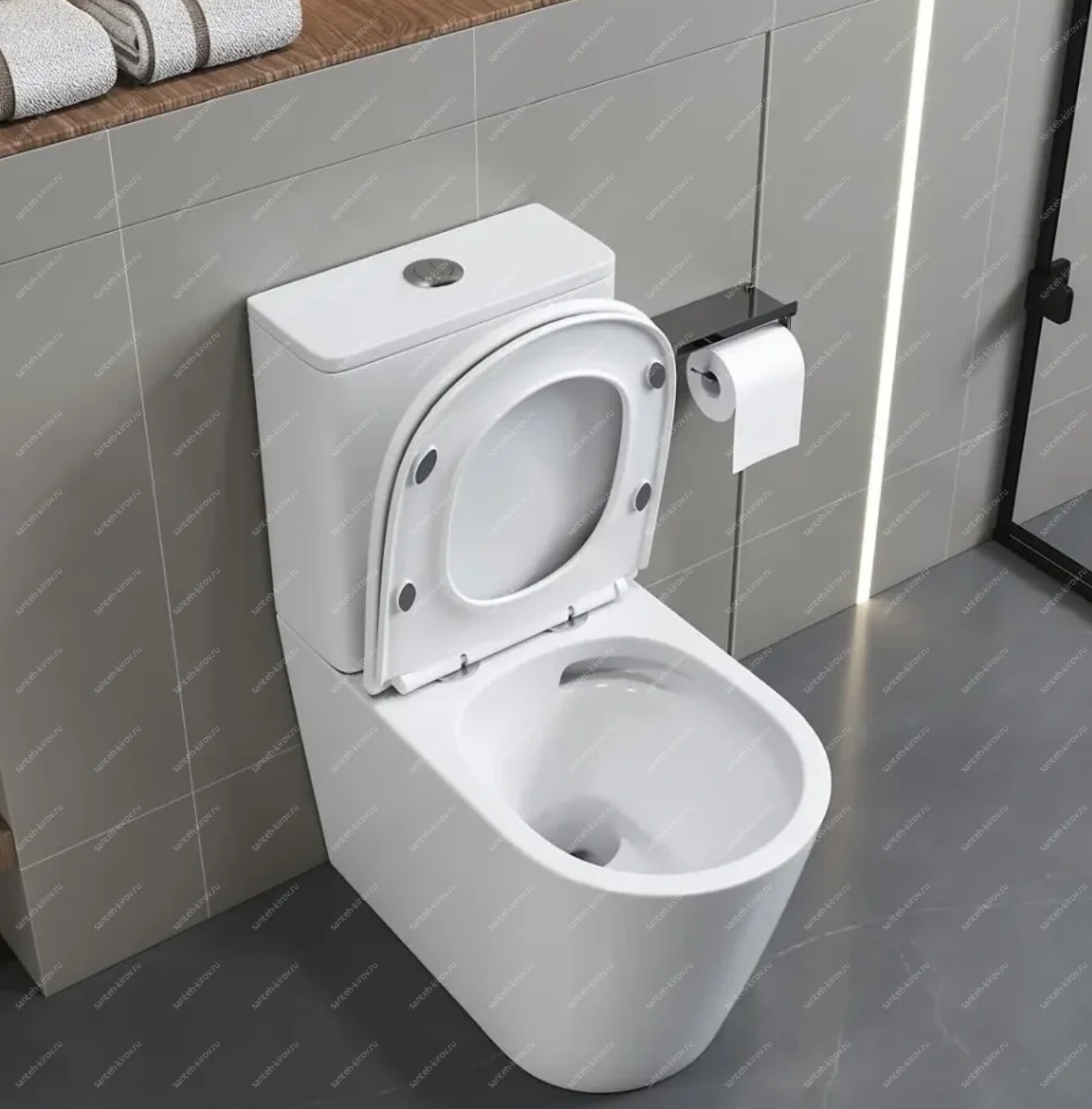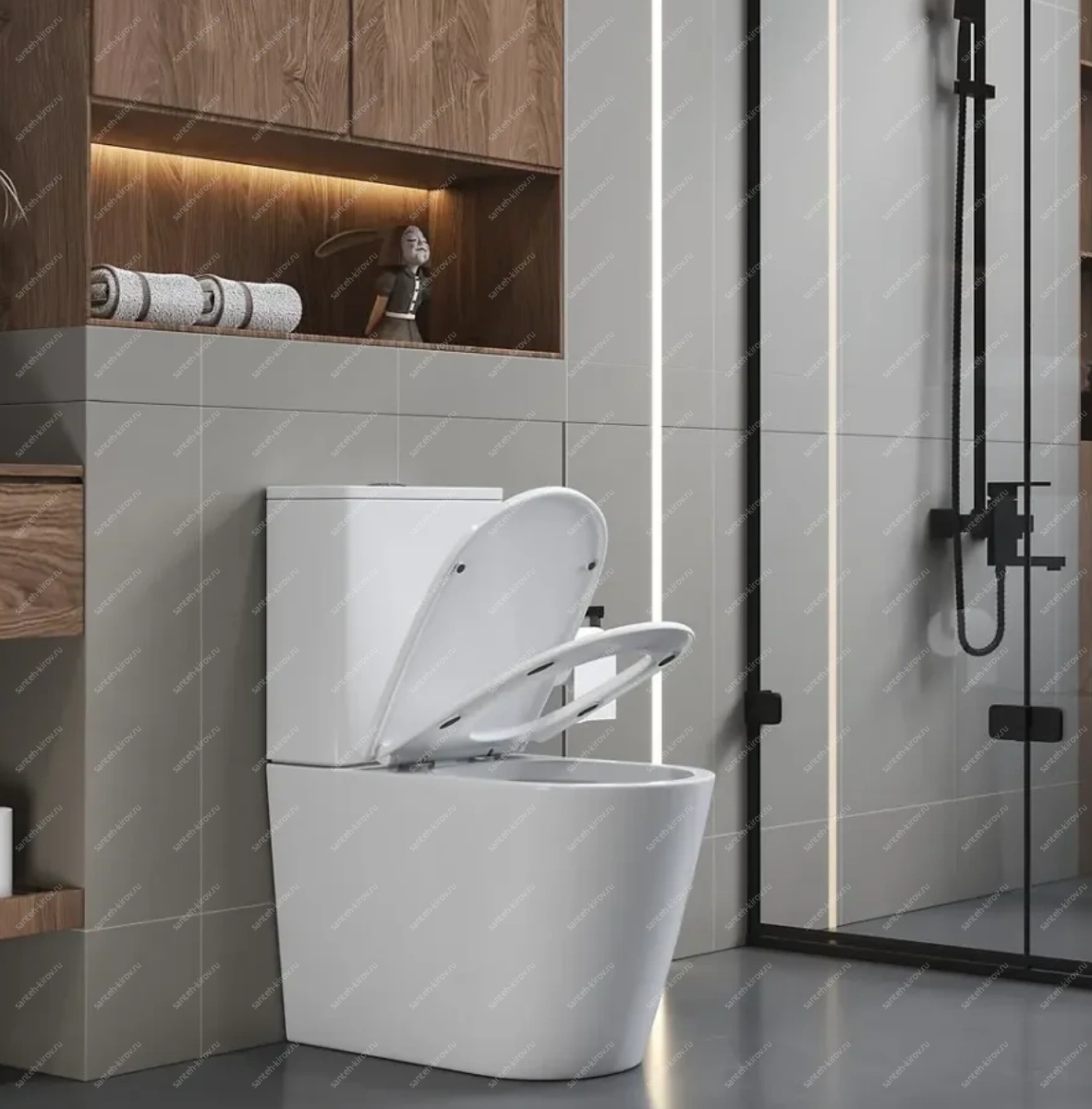 Механизм плавного опускания сиденья добавляет комфорта.