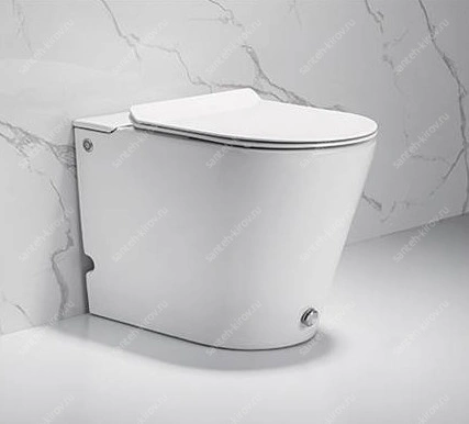 Смыв запускается кнопкой, расположенной сбоку по правую руку или ногой на кнопку внизу унитаза;