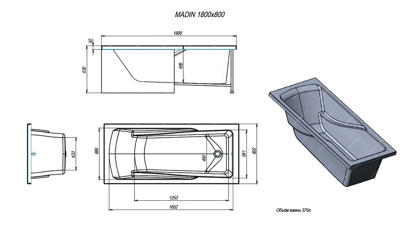 Ванна акриловая "MADIN" 1800х800х510мм ALEX BAITLER