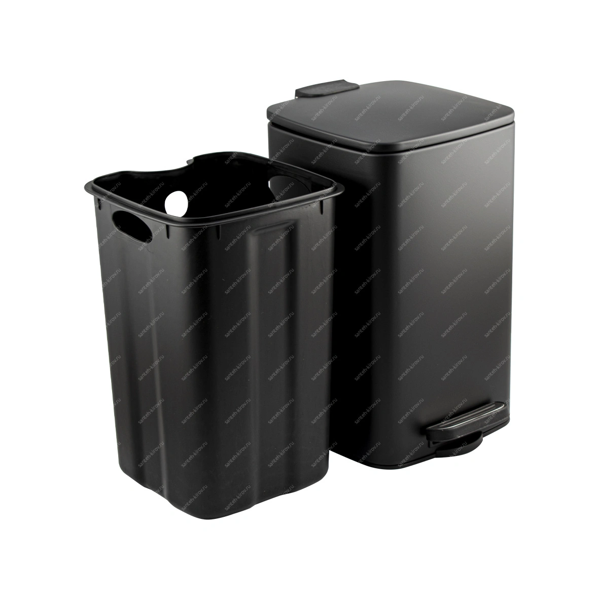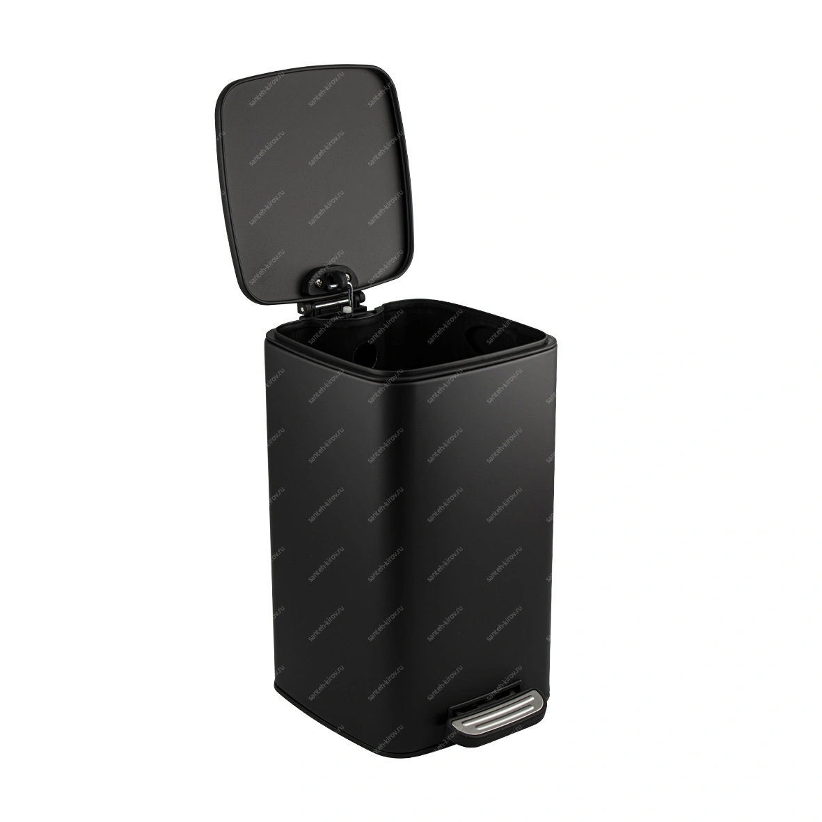 Ведро оснащено пластиковым гигиеническим контейнером с металлической ручкой для переноса и механизмом поднятия крышки, при помощи нажатия на педаль.