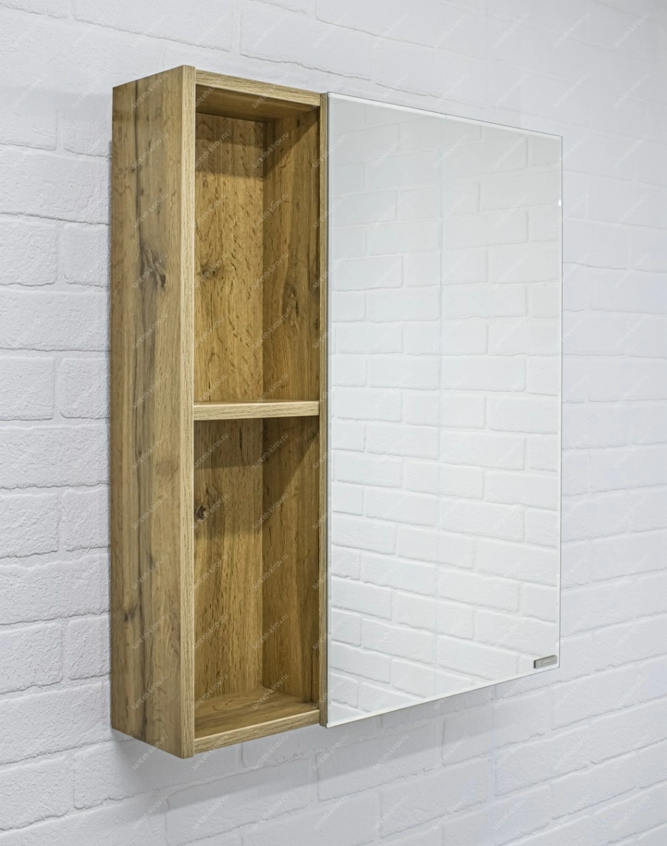 Подвесной шкаф поставляется в собранном виде, что облегчает его установку на стену. Это особенно удобно для занятых людей, ценящих свое время. Зеркало в ванную с полками выполняет не только декоративную функцию, но также расширяет пространство за счет отражающей поверхности.